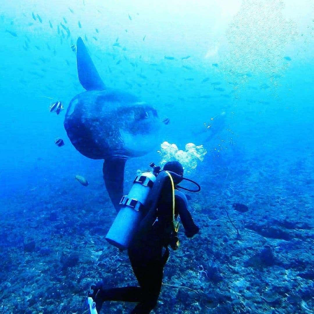 Gamat Bay is also one of the most beautiful scuba diving spots in Nusa Penida. The reason is, the bay is a plateau with a depth of about 8 meters, full of coral. And you will also often see turtles. Hence, a good place to do discovery dives when conditions are good. Especially if there is no current at high tide. And at the exit of the bay was a wall that descended into the sand plain 50 meters deep.